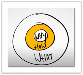 Proses untuk mencapai tujuan dimulai dari yang paling dalam, Why (mengapa) dilanjutkan bagaimana (How) dan Apa (What). Why (Mengapa) terkait dengan tujuan, keyakinan, niat untuk melakukan sesuatu. How Adalah bagaimana untuk mewujudkan Mengapa, yang meliputi : strategi, proses, nilai dan keunggulan. What adalah Apa, hasil dari tindakan yang kita lakukan. Menurut Simon Sinex, posisi Mengapa ada di bagian otak yang mengendaikan perasaan, terkadang sulit untuk diungkapkan. Pembuatan Visi Perusahaan akan memakan waktu yang sangat lama karena banyak menyangkut hal abstrak yang harus dapat dikwantifikasi. Dari ketiga proses ; why, how dan what maka menentukan mengapa (Why) termasuk time consuming, membutuhkan waktu yang tidak sebentar. Why dalam konteks Perusahaan dan individu harus dikwantifikasi sehingga dalam penerapan How (strategy) akan terarah dan fokus.