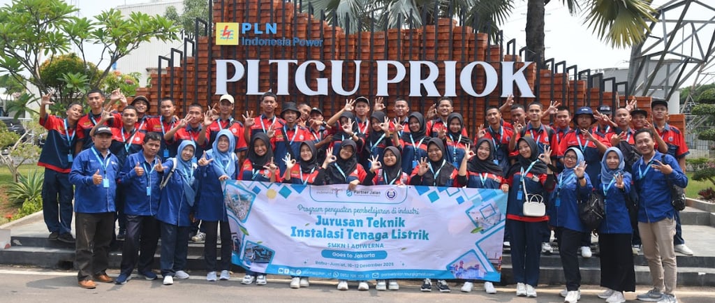 Jakarta, 11 Desember 2025 – PLN Indonesia Power Unit Bisnis Pembangkitan (UBP) Priok menerima kunjungan industri dari SMKN 1 Adiwerna untuk kegiatan pembelajaran dan sharing knowledge terkait proses kerja pembangkit listrik. Kegiatan ini memberikan pemahaman langsung kepada siswa mengenai operasional pembangkit, khususnya Pembangkit Listrik Tenaga Gas dan Uap (PLTGU), serta peran strategisnya dalam sistem kelistrikan nasional.